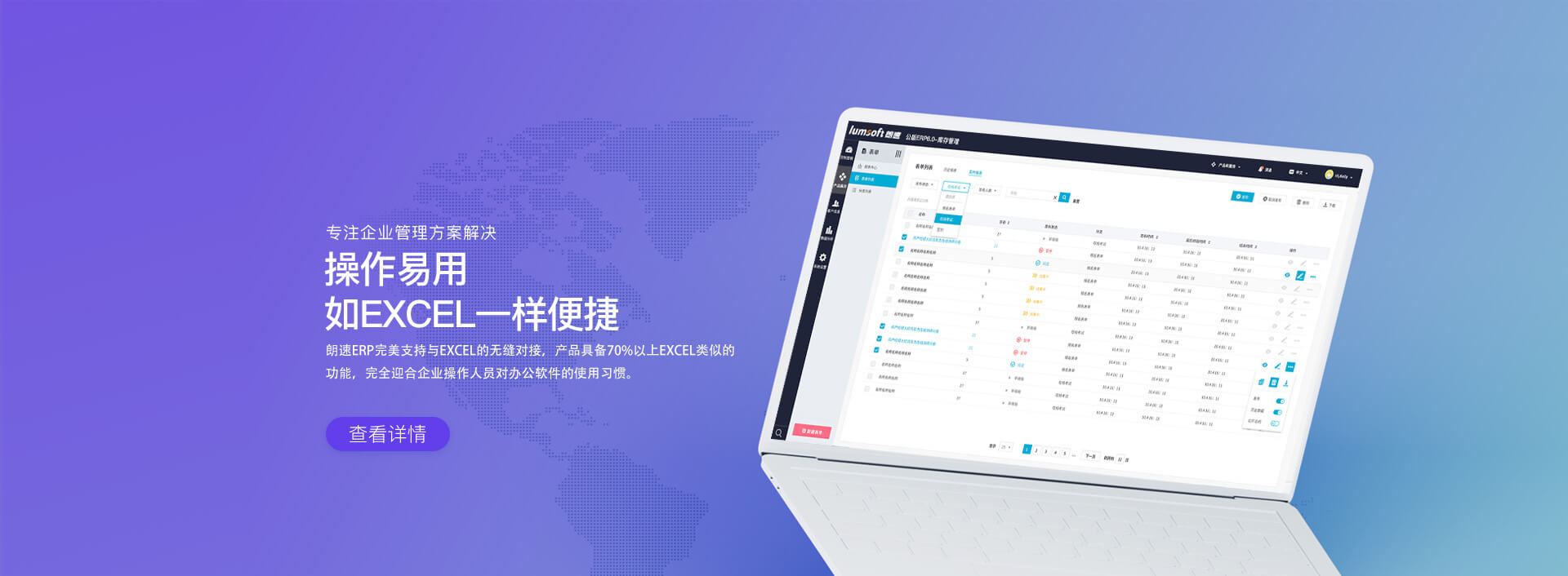 朗速ERP一體化管理系統(tǒng)(CRM客戶關(guān)系+ERP業(yè)務(wù)流程+OA審批流程+產(chǎn)品PDM檔案+二維碼追溯跟蹤高度融合無(wú)縫集成)是由朗速專業(yè)管理團(tuán)隊(duì)基于企業(yè)實(shí)際流程并提取同類企業(yè)先進(jìn)管理經(jīng)驗(yàn),結(jié)合朗速自身智能化產(chǎn)品優(yōu)勢(shì)為企業(yè)打造的一套專屬于企業(yè)自身的綜合管理平臺(tái)。